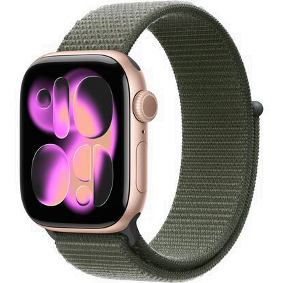 Series 11 из алюминия цвета «розовое золото», нейлоновый спортивный ремешок цвета «лес»