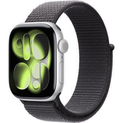 Series 11 из алюминия серебристого цвета, спортивный ремешок чёрного цвета