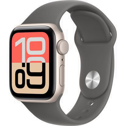 Series SE 2025 из алюминия цвета «сияющая звезда», спортивный ремешок цвета «каменно-серый»